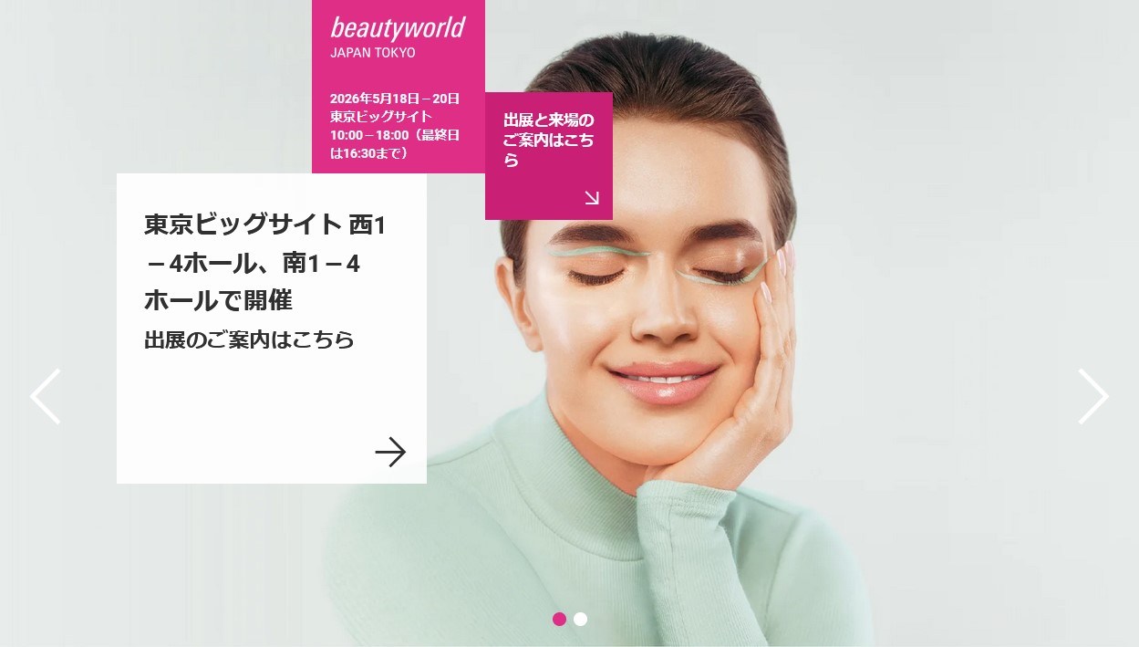 【名称】ビューティーワールド ジャパン 東京(第28回)【会期】2026年5月18日(月)-20日(水)【時間】10:00–18:00(最終日は16:30まで)【出展場所】東京ビッグサイト ①南ホールS4/ブースB025 ②南ホールS4/ブースB026